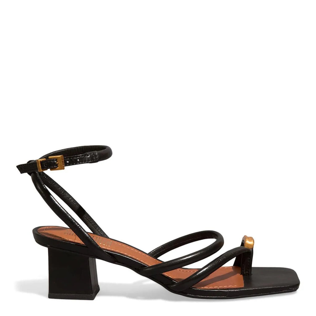 Sandália Elegance Metal – Salto Bloco e Tiras Finas com Detalhe Dourado