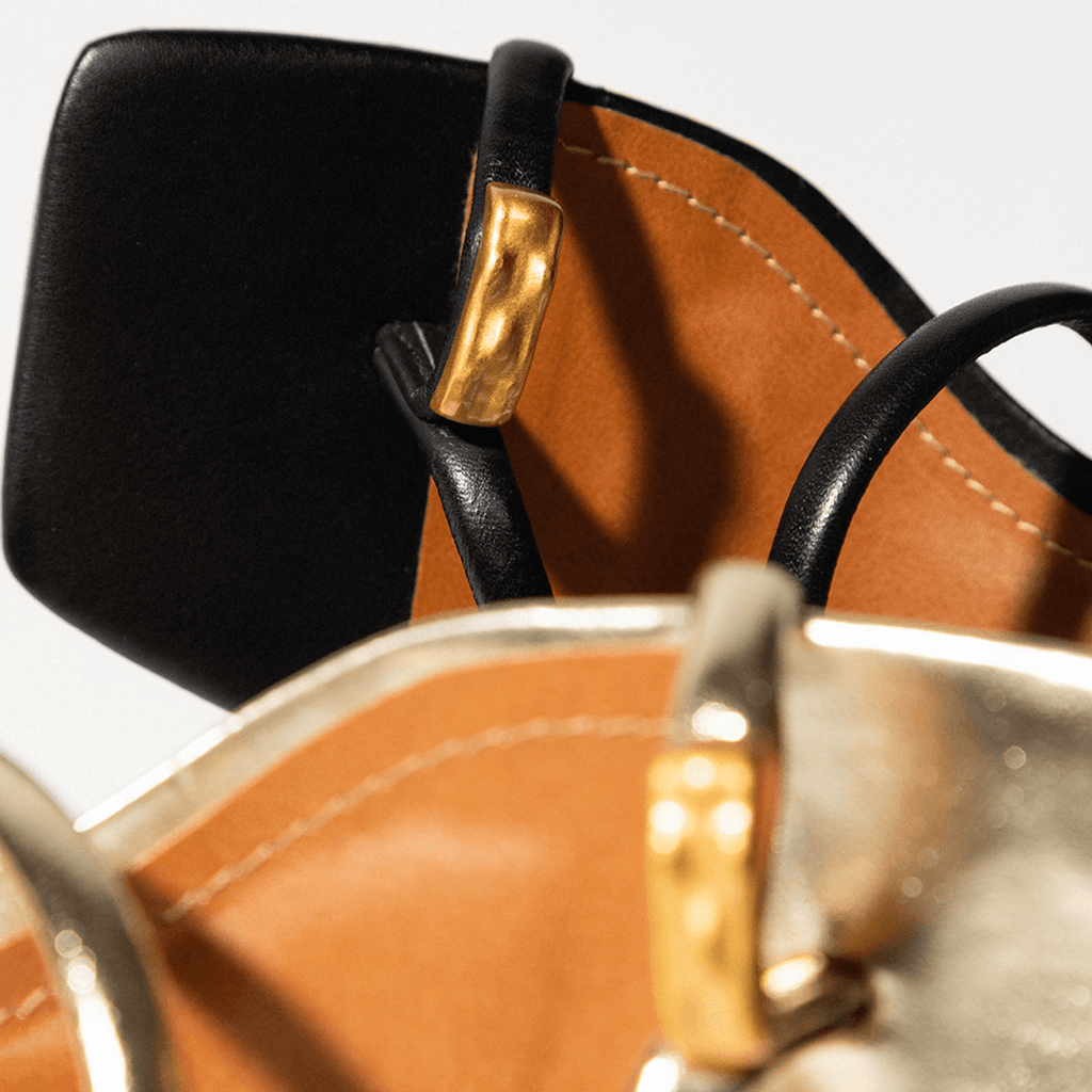 Diferencial: Detalhe metálico no dedão com acabamento dourado