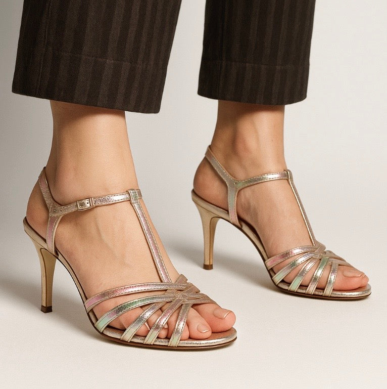 A Sandália Luce D’Oro é a união perfeita entre sofisticação e modernidade. Com acabamento metalizado dourado e tiras finas nas cores rosa, verde menta, cobre e lavanda, ela é a escolha ideal para eventos especiais, jantares elegantes ou para elevar o look com muito estilo. O salto fino de 7,5 cm oferece a altura certa para valorizar a silhueta, mantendo o conforto com sua palmilha levemente acolchoada e solado emborrachado antiderrapante.