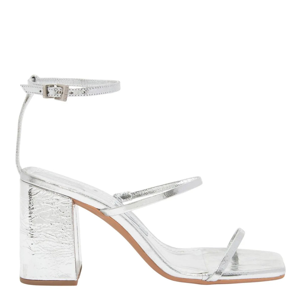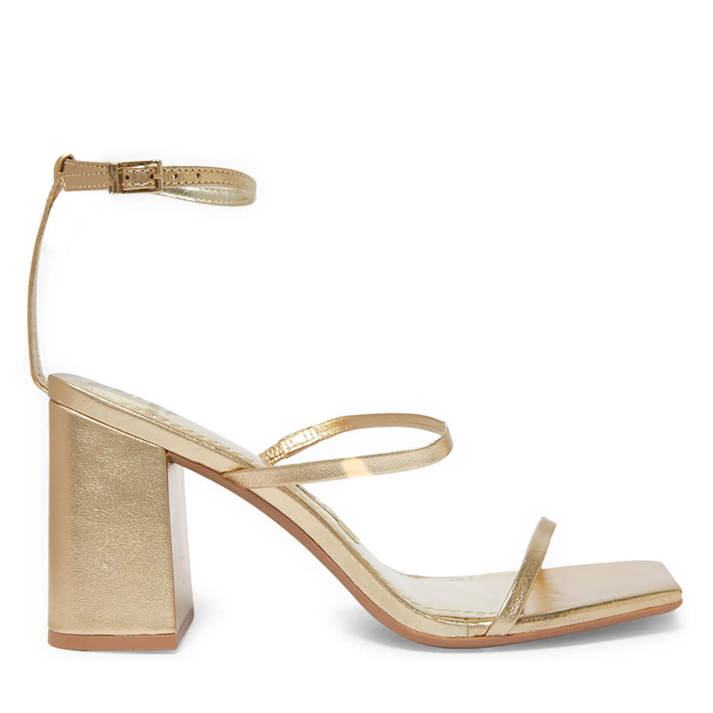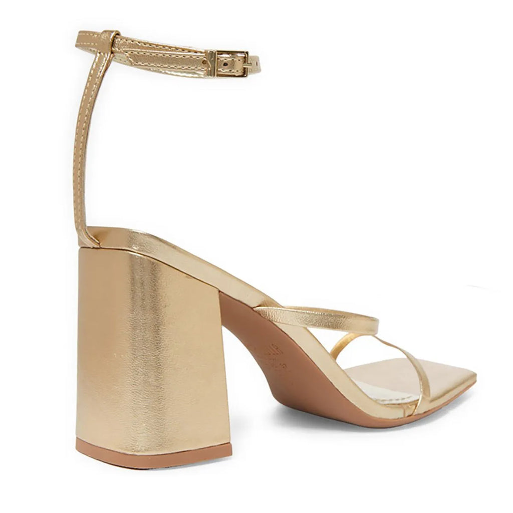 Sandália Golden Shape – Salto Bloco Metalizado com Tira Fina