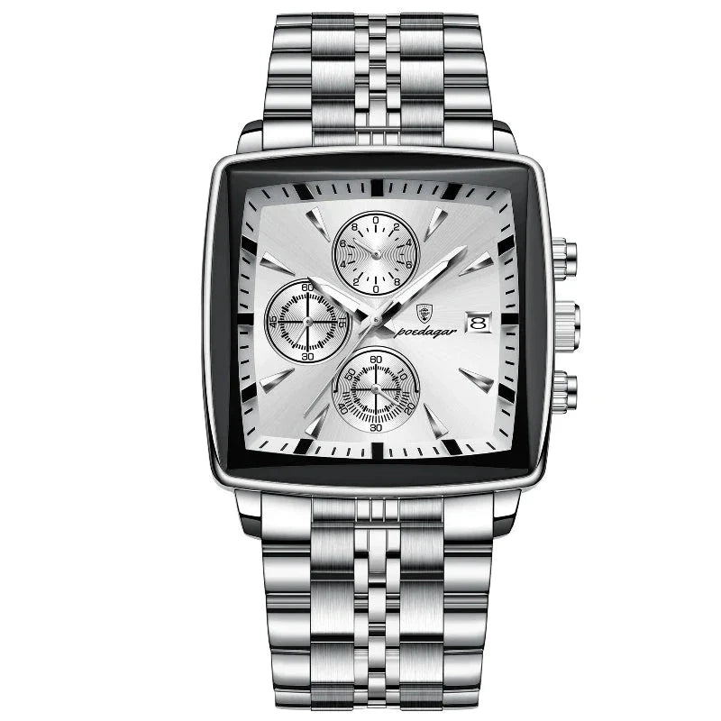 Uma obra-prima de design que chama a atenção. Com seu mostrador quadrado e ousado e estética marcante, este relógio não é apenas um acessório; é uma declaração de poder e sofisticação. Seja em um evento formal ou em uma reunião casual, o Olímpio garante que você se destaque com graça e autoridade.
