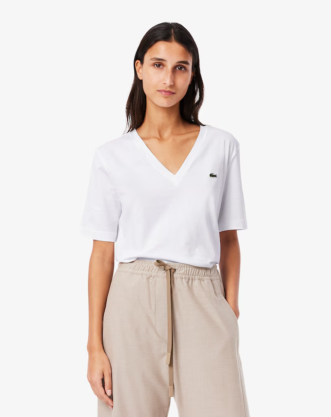 Você está em busca da camiseta perfeita para adicionar ao seu guarda-roupa? Conheça a Camiseta Gola V Feminina com Ombros Caídos da Lacoste! Conforto e estilo em um só produto. Feita em jersey de algodão macio, essa camiseta é tudo o que você precisa para se sentir confortável e cheia de estilo. O corte moderno e drapeado com ombros caídos garante um ajuste relaxado que combina com qualquer ocasião, desde um passeio descontraído até um encontro mais arrumado. Possui um decote em V clássico que valoriza o colo. O ícone crocodilo bordado da Lacoste que adiciona um toque de sofisticação e autenticidade. Conta ainda com um ajuste perfeito e liberdade de movimento sem abrir mão do charme. Combine com jeans, saias ou até mesmo shorts. Essa camiseta pode ser usada em diversas situações e combinações! Além disso, o algodão 100% garante que você fique fresca e confortável durante todo o dia. Invista em uma peça da Lacoste e garanta qualidade, estilo e um toque de sofisticação ao seu visual. Sinta-se maravilhosa todos os dias com um produto que une conforto, qualidade e um design indiscutível. Você merece! Confira todos os detalhes da Camisa Gola V Feminina com Ombros Caídos Lacoste: