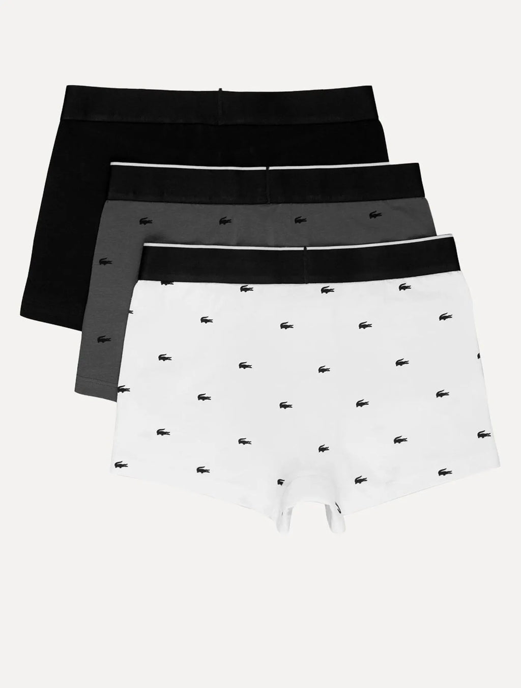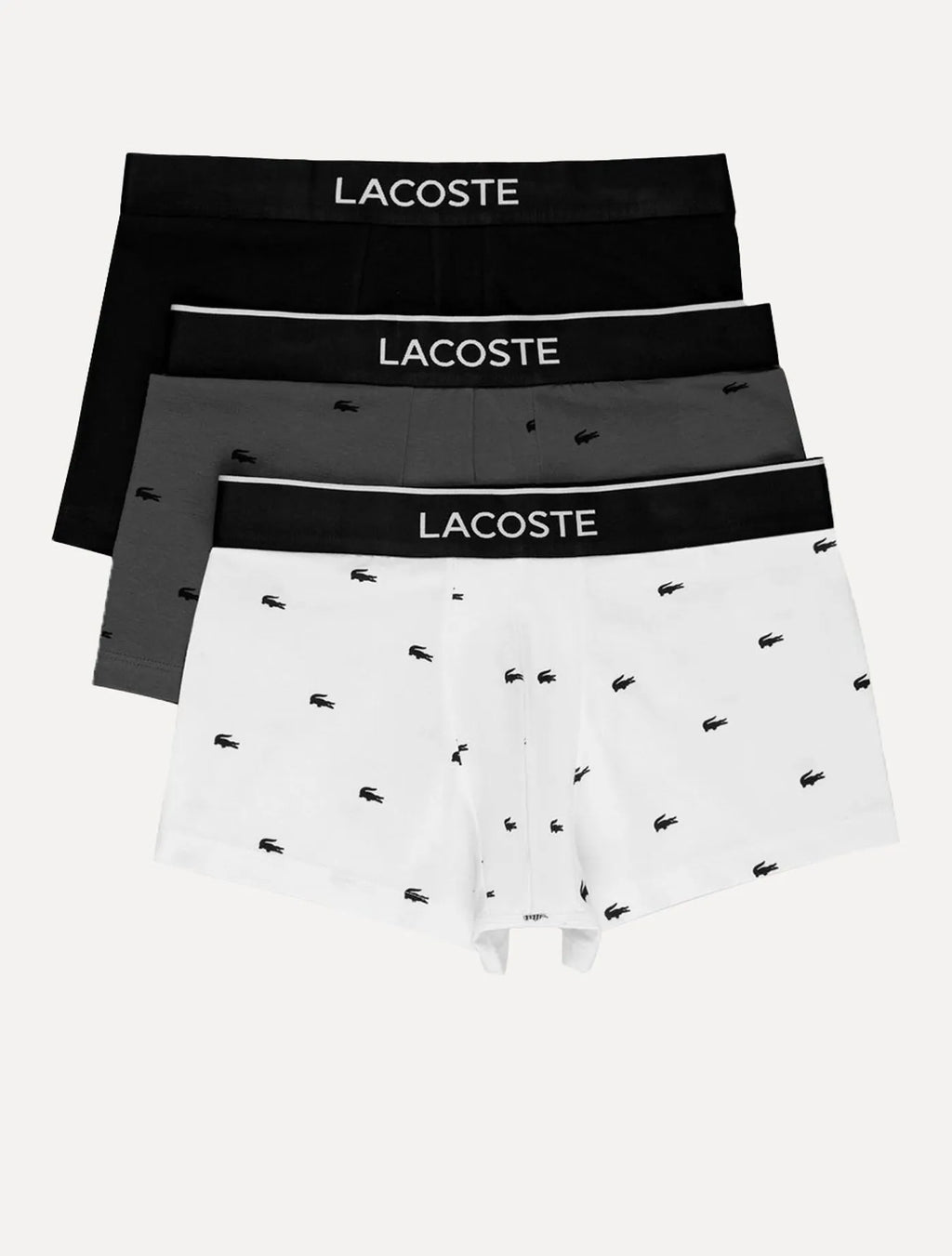 Kit com 3 (três) cuecas Lacoste sendo uma na cor cinza mescla, uma na cor preta e outra na cor chumbo mescla.
